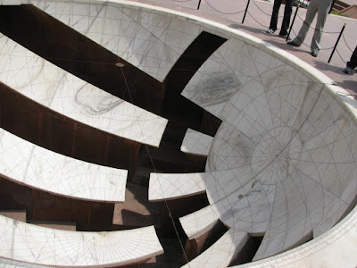 The Jai Prakash Yantra (above) was used in calculating celestial observations and tracking the signs of the zodiac. Jai created instruments for calculating the exact angle of the sun, positions of constellations (by calendar day and hour), and Calendar day. My favorite are his time pieces - two large sundials.